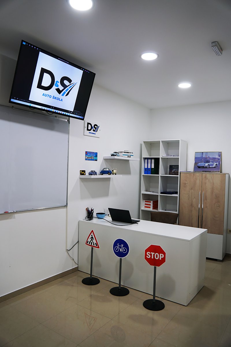 Naša učionica je savremeno opremljen prostor u kojem polaznici uče osnove saobraćaja, propise i pravila kroz interaktivna predavanja i testove. U prijatnoj atmosferi, uz podršku instruktora, teorijska obuka postaje zanimljiva i razumljiva. Sve što naučite ovdje biće vam osnova za sigurnu vožnju na putu.